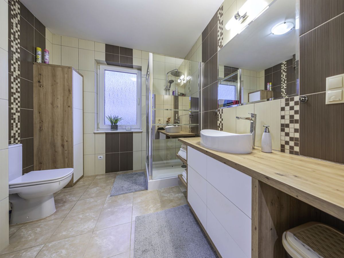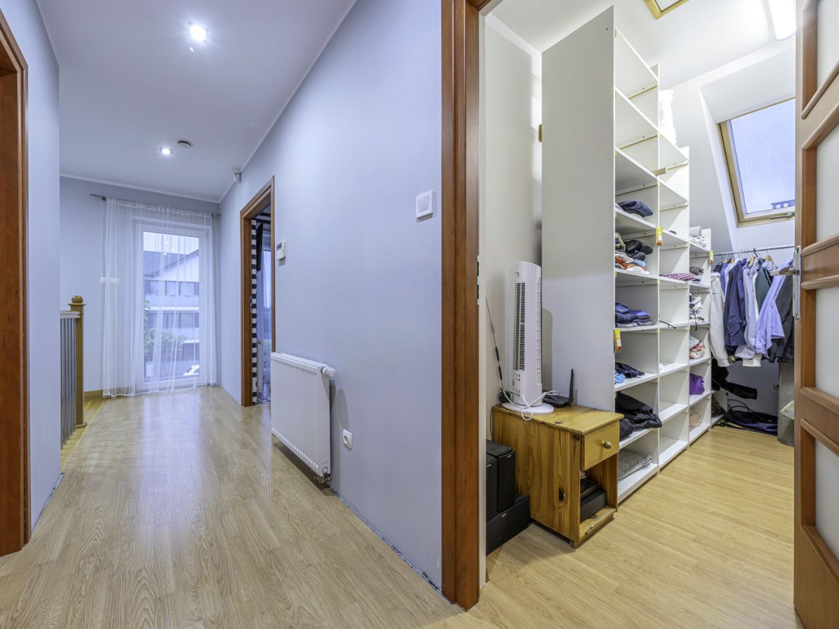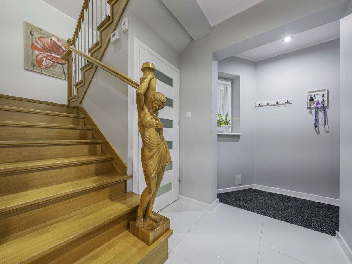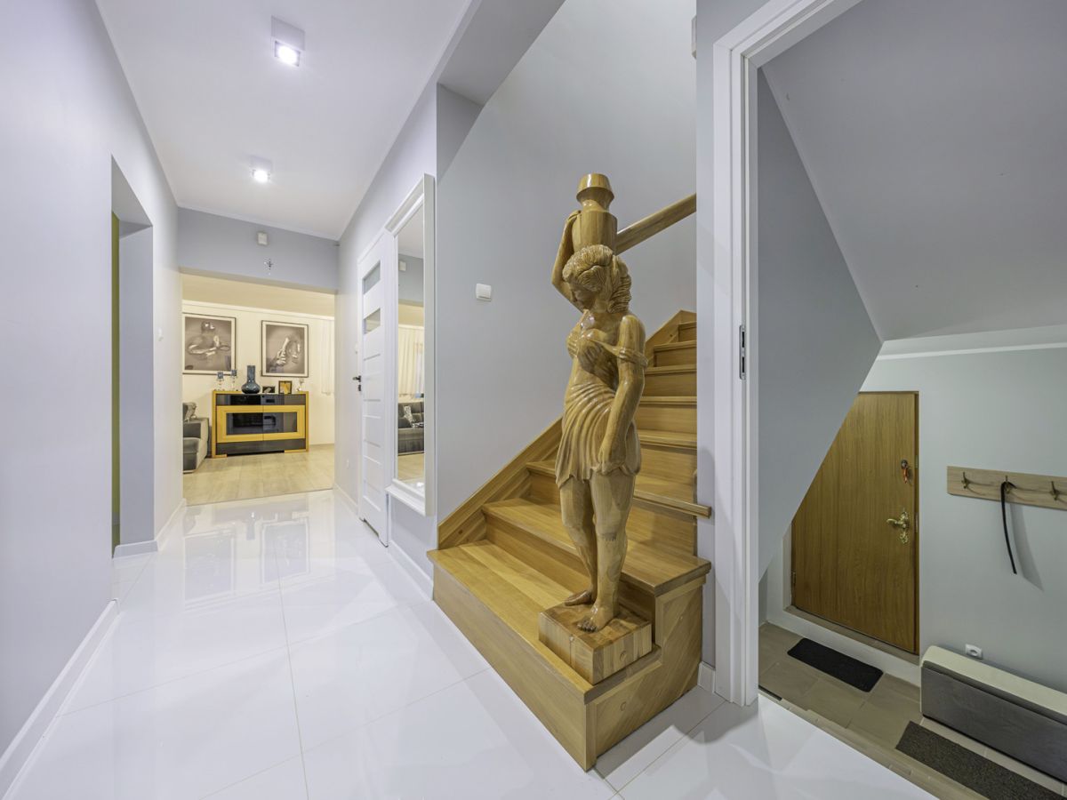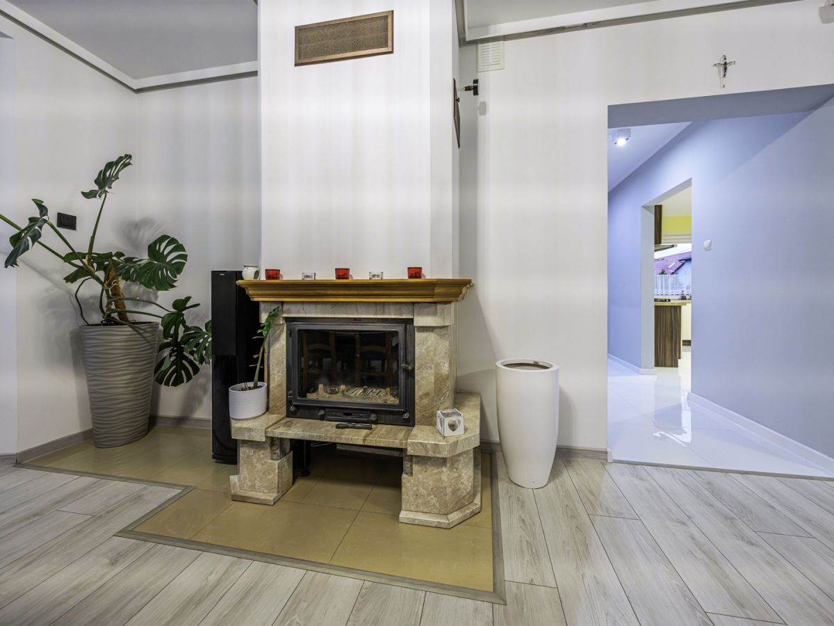 Na podłogach panele wysokiej klasy ścieralności oraz terakota. Ogrzewanie gazowe, dodatkowo kominek z rozprowadzeniem ciepła. Rozprowadzona jest także instalacja alarmowa. Dom posiada wodę miejską i podłączony jest pod kanalizację.