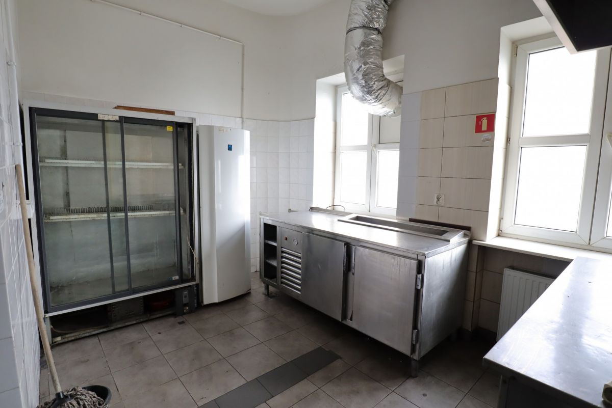 Lokal skÅ‚ada siÄ™ z dużej sali, dwie Å‚azienki dla klientów, Å‚azienka dla personelu, kuchnia, magazynek, zmywak i pomieszczenie socjalne.Â