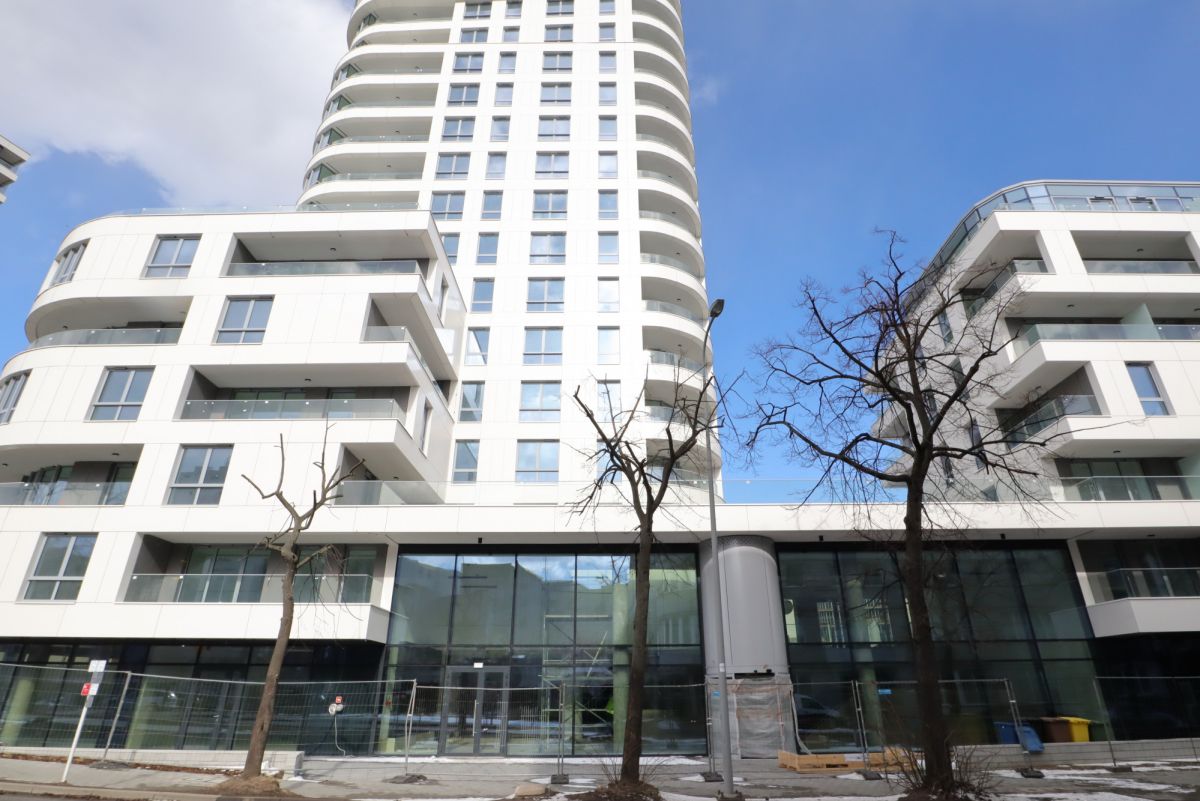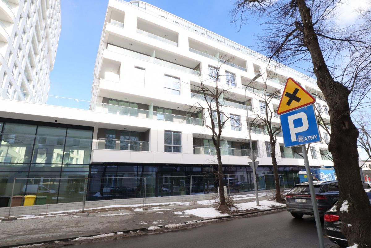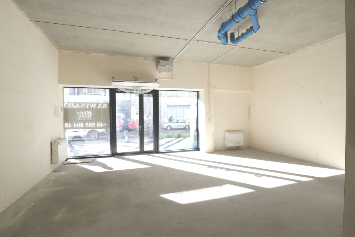 Mieści się na parterze apartamentowca. Posiada wysokie witryny od strony ulicy.