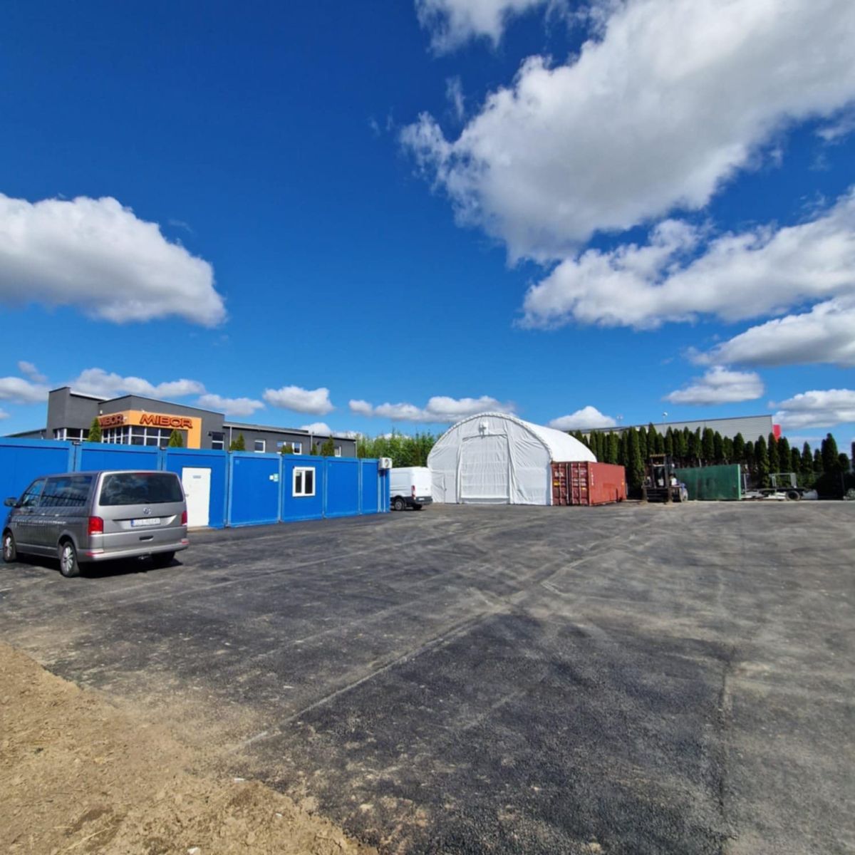 Teren utwardzony asfaltem - przygotowany do intensywnego użytkowania, w tym dla pojazdów ciężarowych i maszyn.