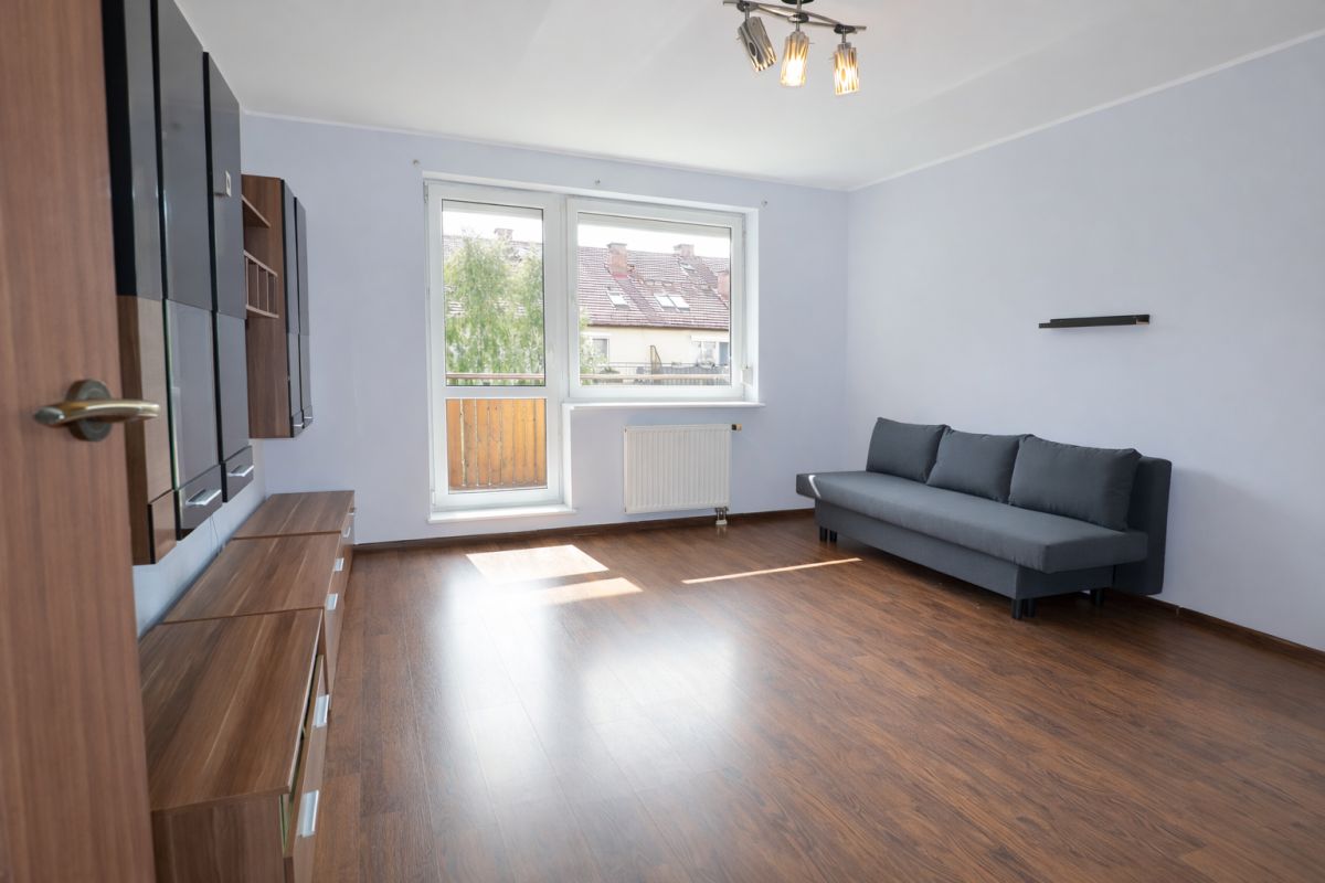 Dwupokojowe, słoneczne mieszkanie o przytulnym układzie pomieszczeń.