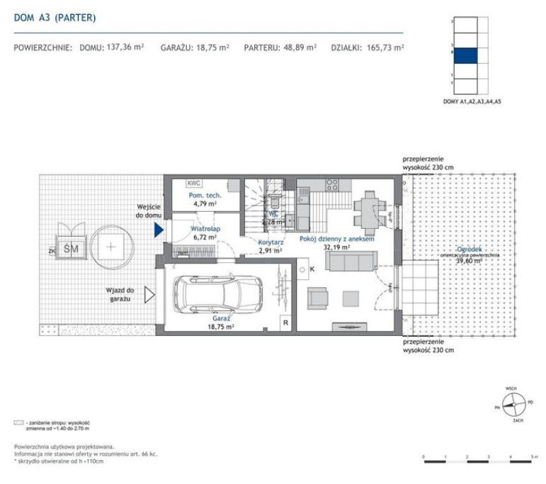 Dom usytuowany jest na działce o powierzchni 165,73 m² i stanowi część kameralnego, starannie zaprojektowanego osiedla, które łączy estetykę, funkcjonalność i komfort życia.
