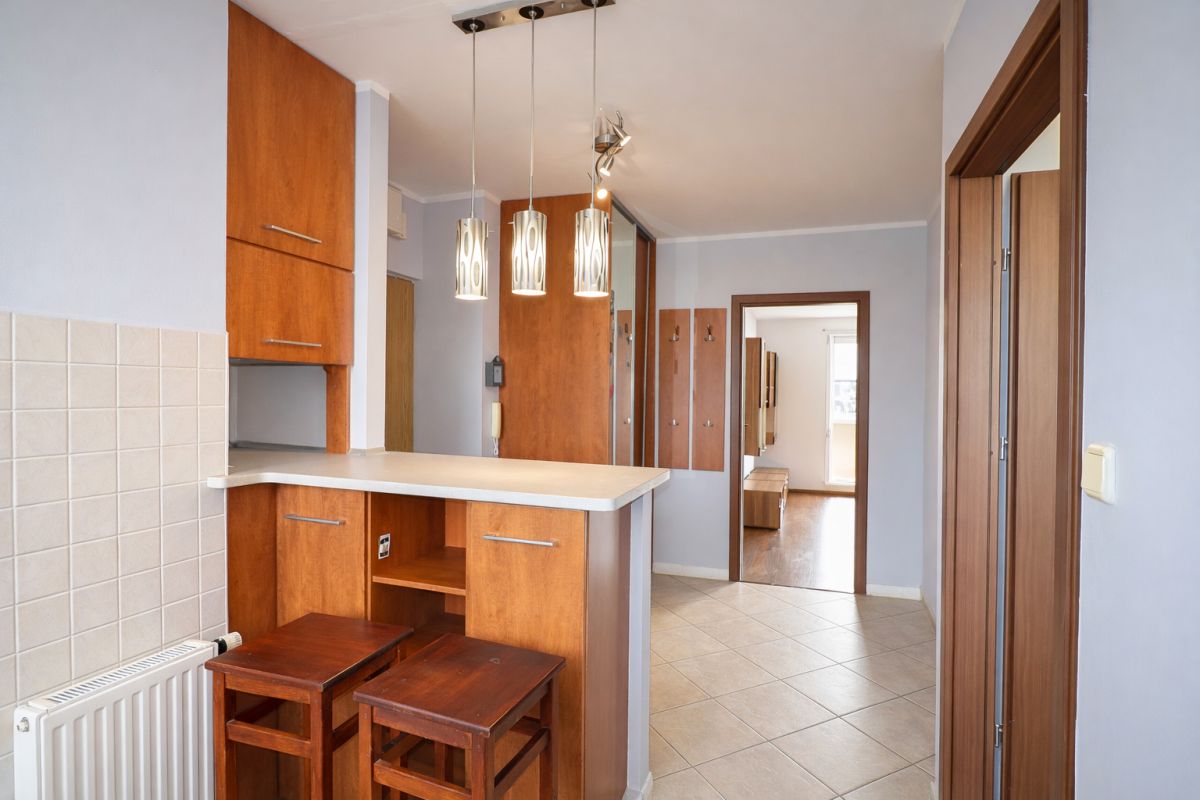 Dwupokojowe, słoneczne mieszkanie o przytulnym układzie pomieszczeń.